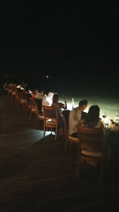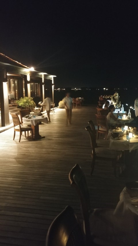 이렇게 야외 테이플로 앉아서 물고기를 보면서 식사 디너를 즐기고 있습니다.