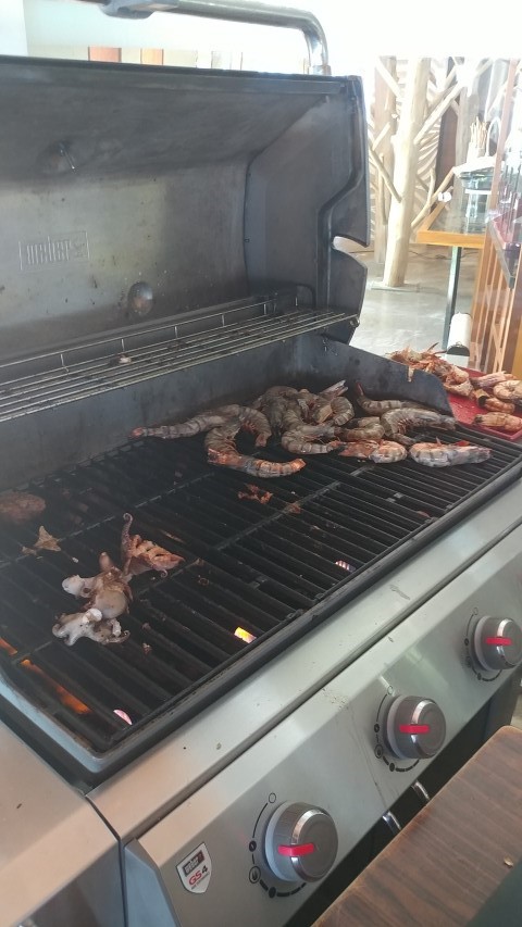 그릴에서 구워준 해산물