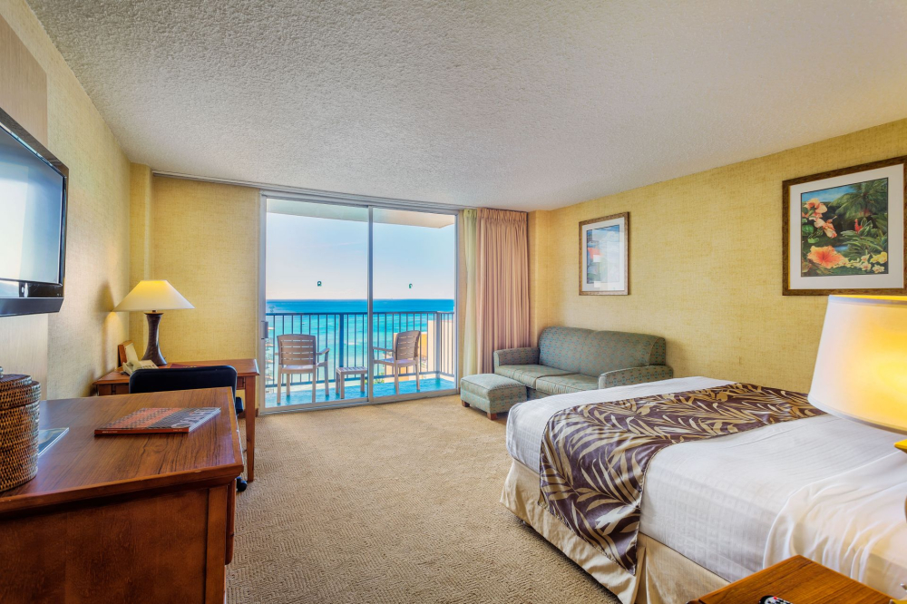 하와이안 풍으로 아늑하게 꾸며진  275개의 와이키키 리조트 호텔의 객실은 스탠다드, 코너디럭스, 미니스위트, 원베드룸 펜트하우스 스위트, 투베드룸 펜트하우스 스위트로 구성되어 있습니다. 모든 와이키키 리조트 호텔 객실은 오션뷰 또는 마운틴/씨티뷰로 구성 되어 있으며 미니냉장고, 초고속 인터넷 서비스 및 HD TV 등의 각종 편의 시설을 제공합니다.