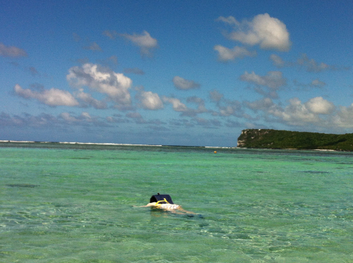 괌 비치는 꽤 멀리 나가도 물 깊이가 그리 깊지 않아서 아이들도 신나게 놀 수 있어요