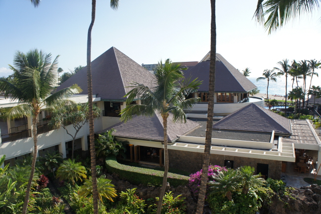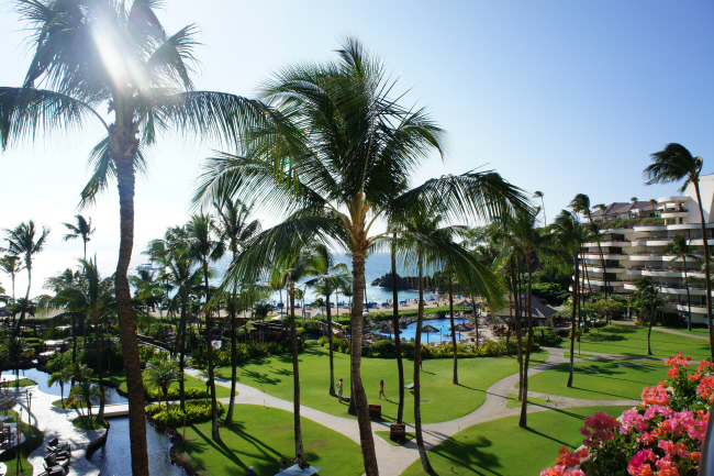 저희는 마우이 쉐라톤에 묵었어요. 처음에 호텔을 정하는데 있어 많은 고민을 했었죠. 좀 조용한 곳이었으면도 했고, 호텔방도 좋았으면 했고, 내부 시설도 좋았으면 했어요 ㅋ 욕심 많았나요? 그래서 고민 끝에 쉐라톤으로 결정했죠. 쉐라톤은 정말 휴양하기 딱!! 좋은 곳이예요 방에서 나오면 바로 내부 수영장이 있고, 그 뒤로 푸르른 비치가 있어요.