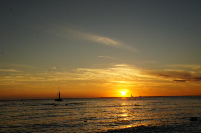 하와이 하면 와이키키 해변을 떠올리죠? 와이키키에 왔습니다~ 마우이와는 너무 다른 분위기!! 화려하고 사람도 많고.. 처음에는 정신 없었지만 와이키키 매력에 곧 빠졌죠