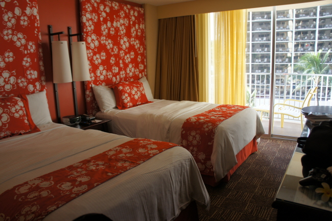 오아후에서는 애스톤에서 숙박을 했어요~ 여기 하와이야~ 라고 딱 알려주는 분위기의 룸이였어요. 조식은 조식 가방 가지고 내부 수영장에 마련 되어 있는 뷔페에 가서 직접 가지고 올 수 있어어요