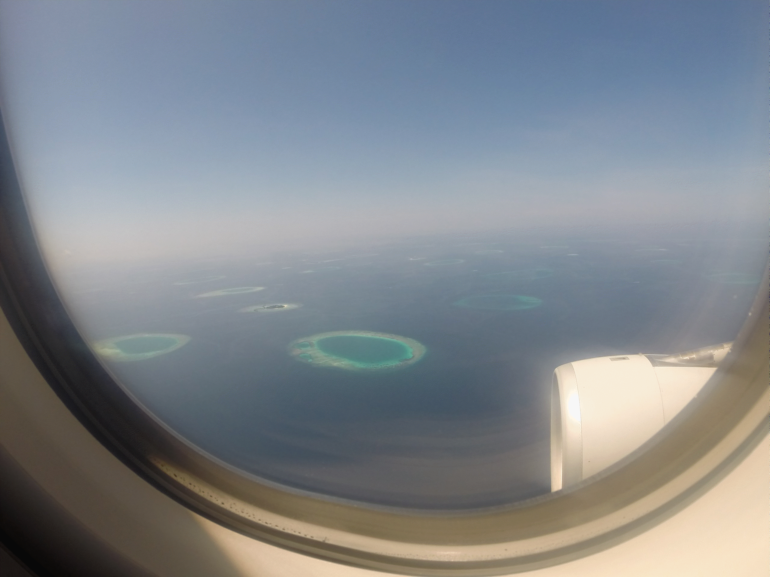 위 사진은 보트를 타기전 마지막 비행기 안이에요. 저 라군이 펼쳐진 섬들이 나오는 순간