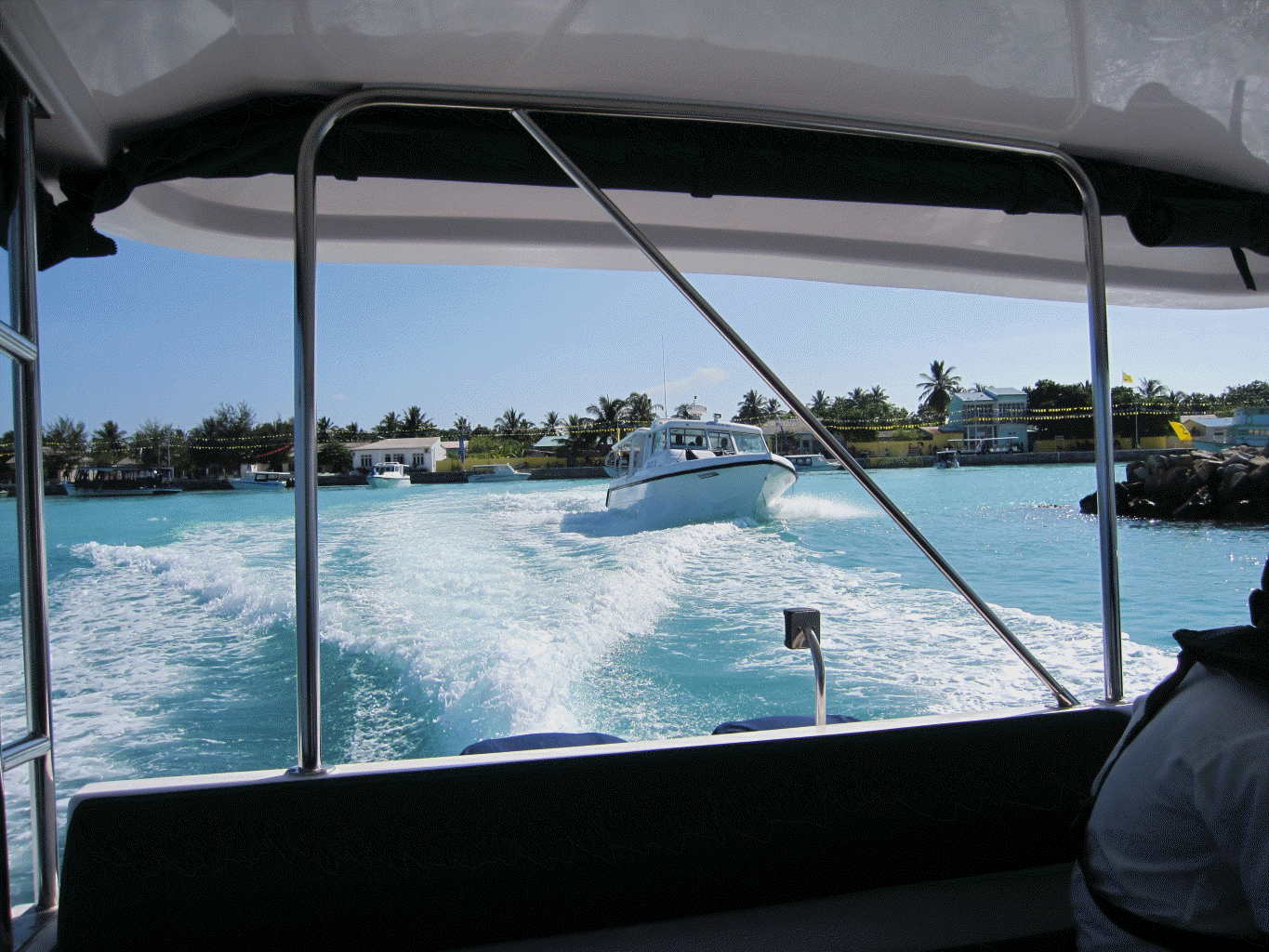 보트를 타고 리조트로 가고있는 중인데 물색깔이 정~말 투명하고 푸르러서