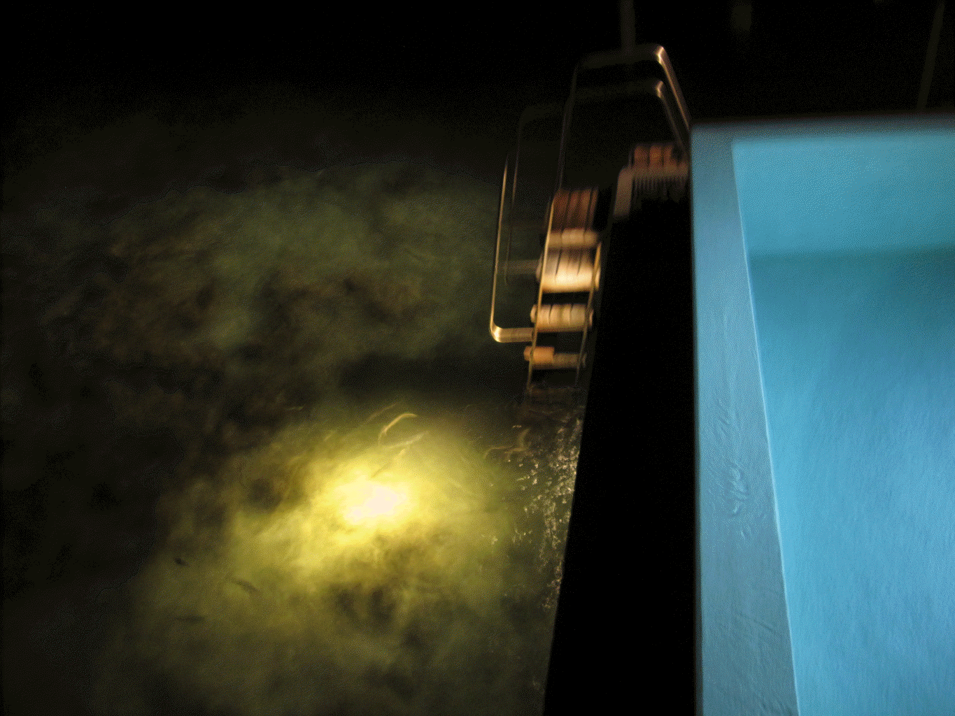 저녁에는 저 위에 사진처럼 계단부분에 조명이 켜지는데요, 실제로보면, 물고기들이 불빛 주변에
