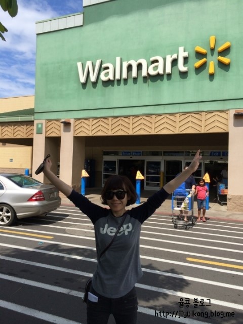 월마트앞에서 꾀죄죄한 얼굴로 인증샷을 찍어요.