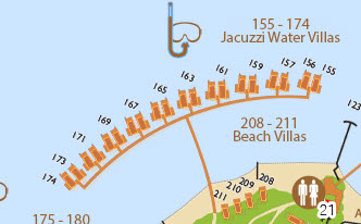 여기도 선셋방향이고 리프랑 좀 더 가까운곳이지만 리프가 가까운만큼 다른 선셋 워터빌라에 비해선 라군이 짧은편.