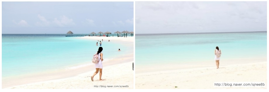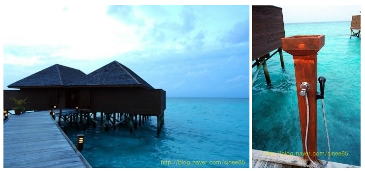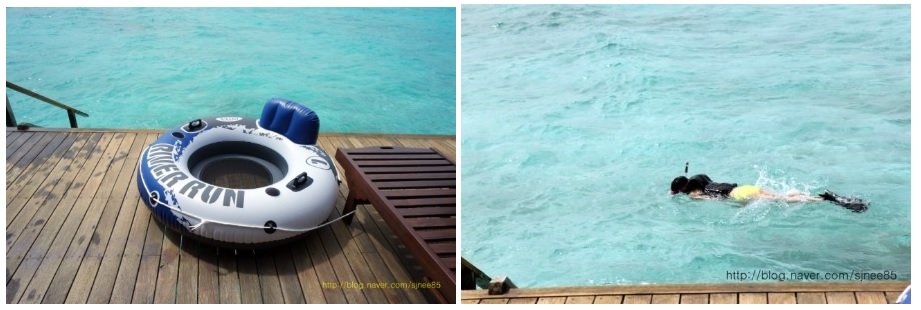 워터빌라 근처 바닷물들은 캐리비안베이처럼 수영장 물 같이 맑고 이쁘다.