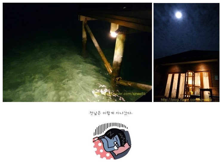 바다와 연결되어 있는 테라스는 밤이면 이렇게 조명이 켜져있는데 물고기들도 잘보이고 아무튼 좋다.