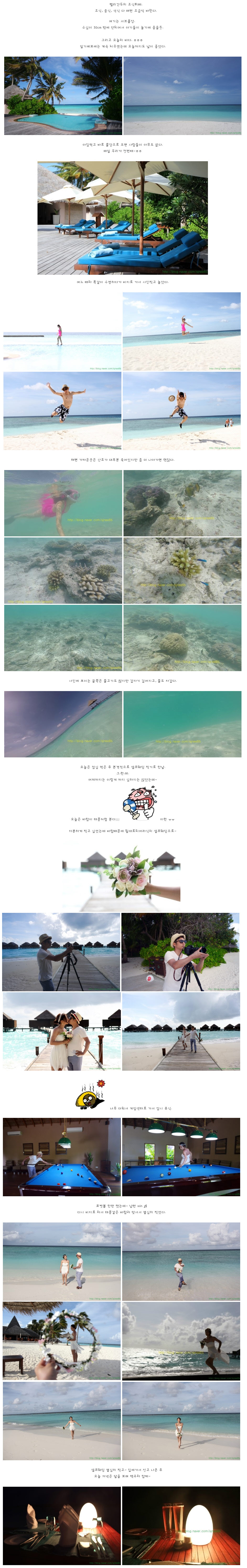| 1328 | 몰디브[140713] 벨리간두 넷째날(조식, 수영, 스노쿨링, 셀프웨딩) | 김수진 | 2014-08-05 | 3086 |