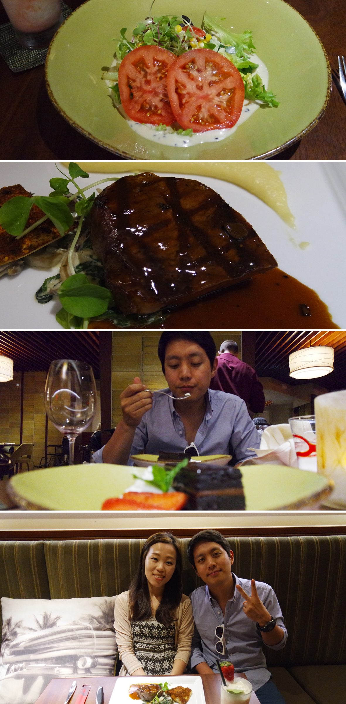 호텔 3층의 레스토랑에서 샐러드-스테이크-후식 3가지의 코스로 먹었다.