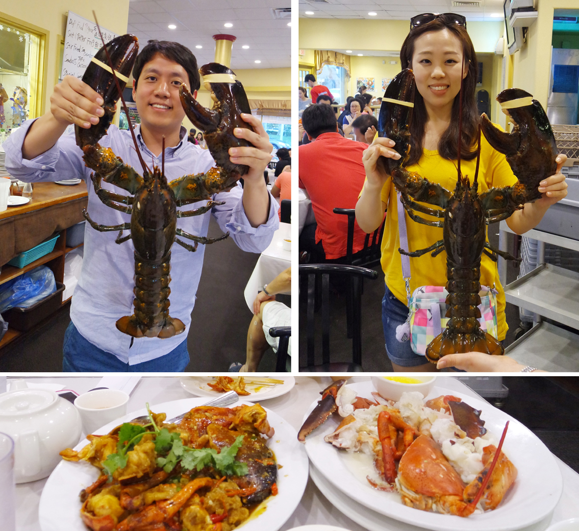 랍스타와 사진을 찍는데 주변 시선이 전부 우리에게 향하였다.