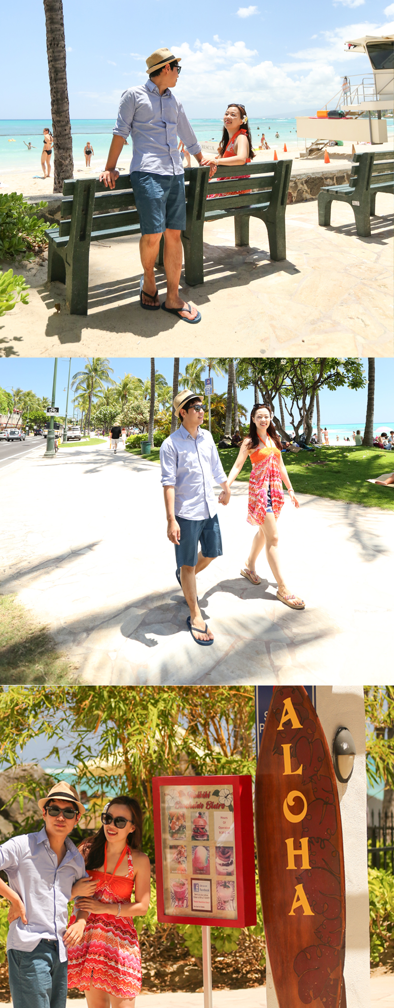 1시부터 2시반까지 칼라카우아 애비뉴거리와 와이키키해변에서 스냅 촬영 후