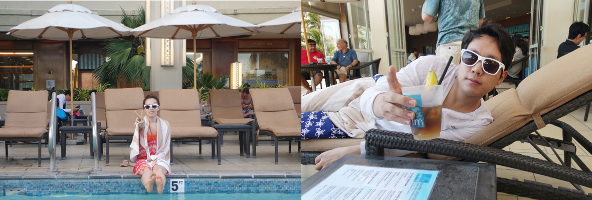 수영장에 누워 음료수도 마시고 하와이에서의 마지막 날을 아쉬워 하였다.
