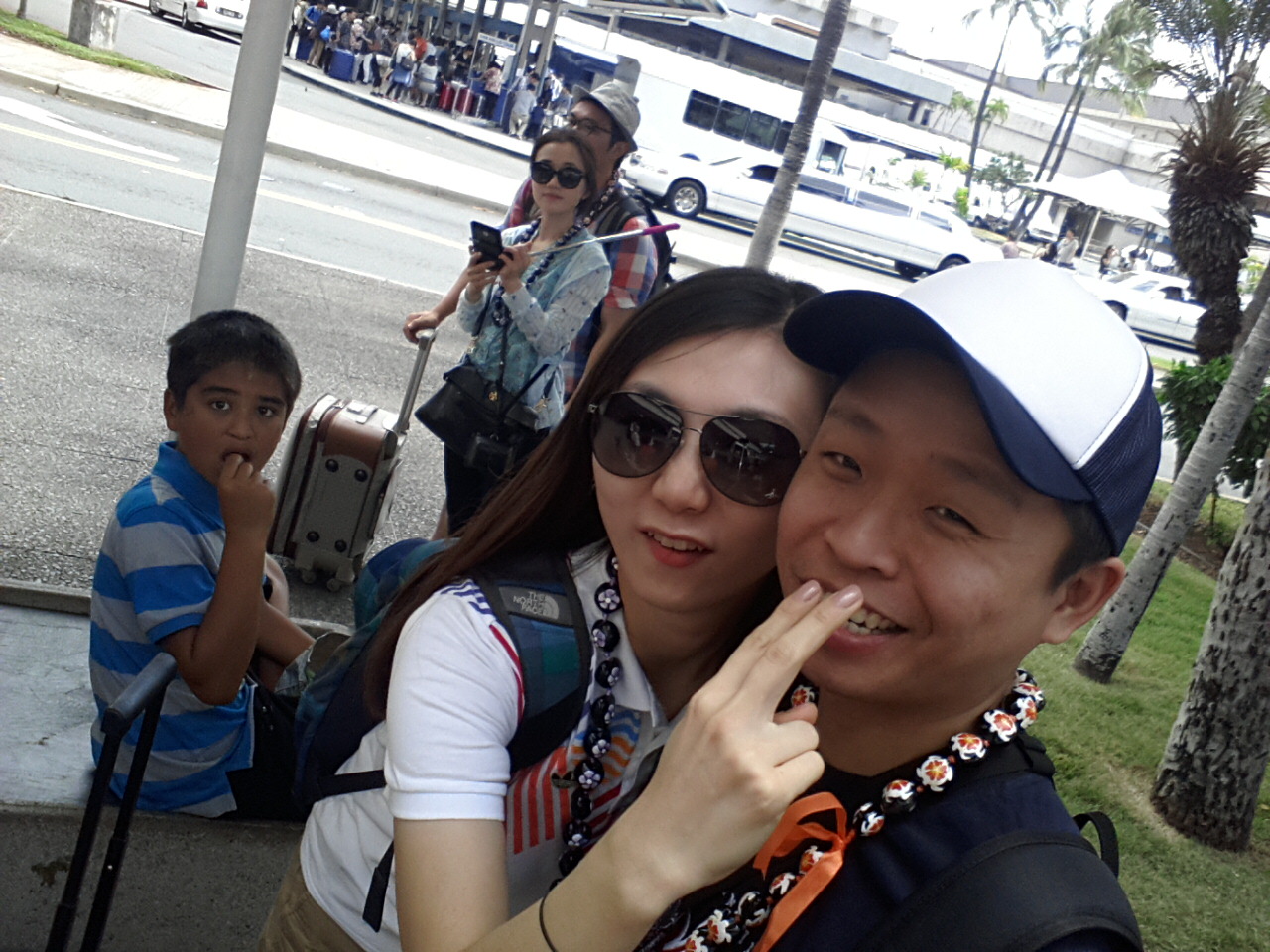 마우이에서 오하우로 주내선을 타고 이동하면 준자유로 신청하신 분들은 호롤룰루 공항에 현지 가이드분이 각 커플들의 이름이 적힌 피켓을 들고 서 있어요. 미리 준비해오신 목걸이(?)를 걸고 인증샷 찍었습니다. 저희 신혼집에 목걸이 고히 모셔두고 있어요 ^^