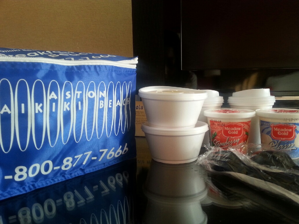 방에 가서나 와이키키 해변에서 자리 피고 먹어도 되요~