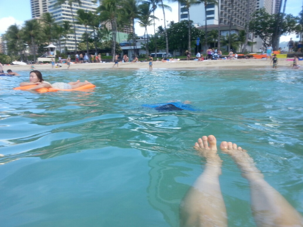 그래서 과감히 렌트하지 말고 호텔 앞 와이키키 해변에서 물놀이를 하기로 결정!