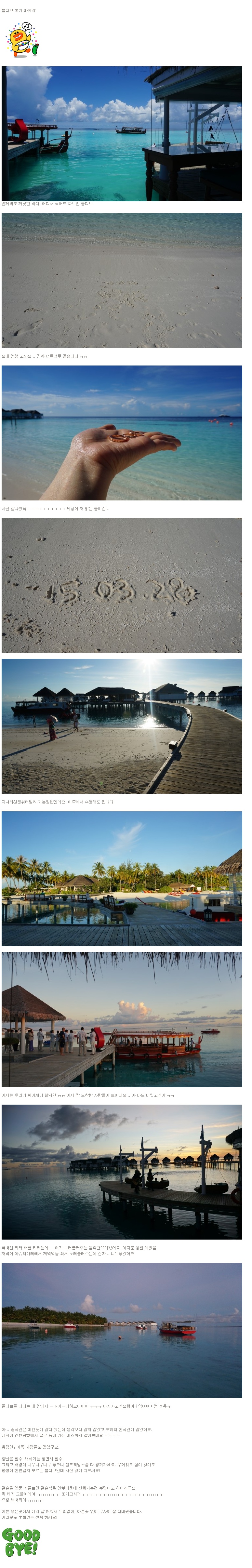 | 1404 | ③ 150329~150402 몰디브 센타라 그랜드 후기입니다! | 임경진 | 2015-04-08 | 3059 |