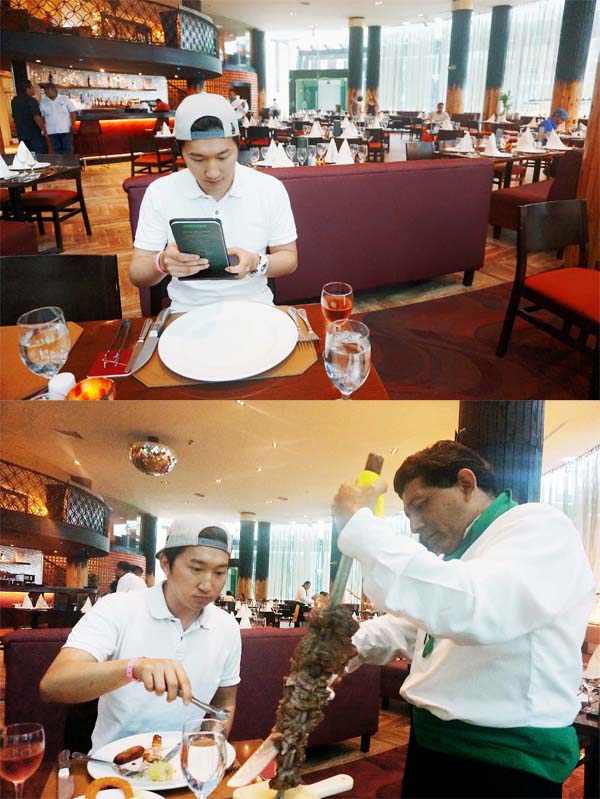 아로마 향에 취해서 한숨 푹 자면서 쉰다는 느낌으로 받으러 가시면 될 것 같아요. 여긴 바비큐그릴인데 갖가지 고기를 즉석에서 바비큐로 구워서 썰어주는 곳이예요.