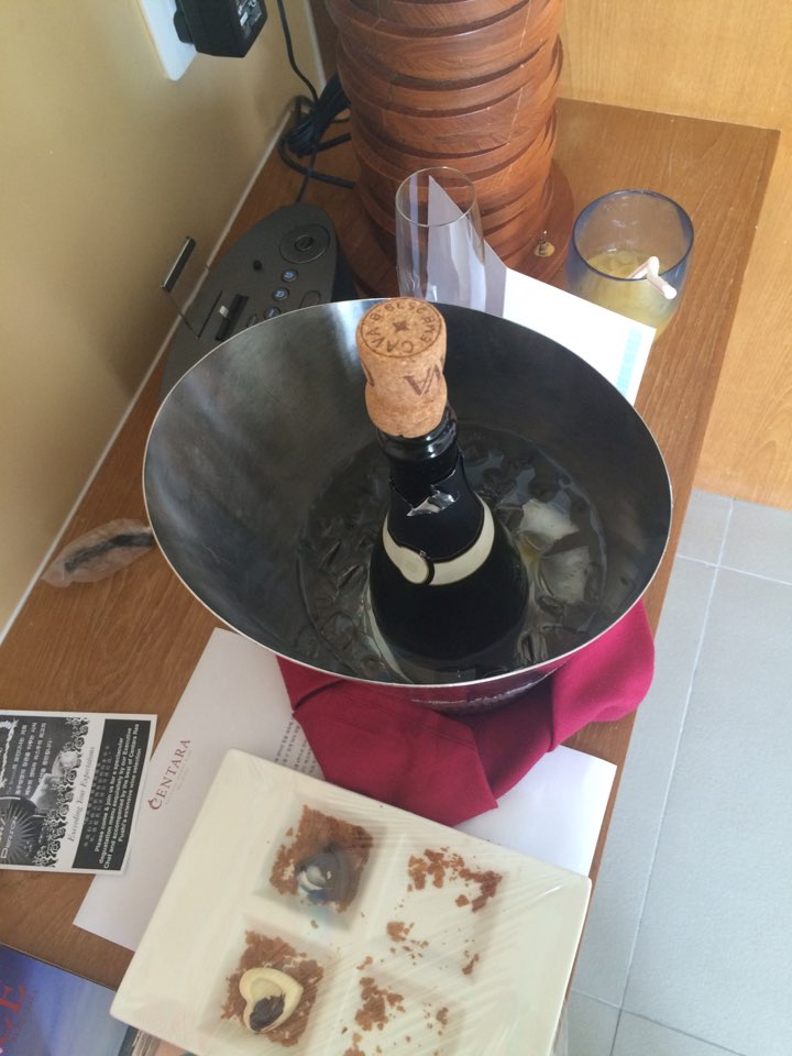 리조트를 도착해서 리셉션의 안내를 받은 후 바로 방으로 안내를 받습니다. 너무 더워서 가자마자 허니무너를 축하해주는 샴페인을 따서 2잔인가 바로 마셨네요.. 같이 초콜렛도 주네요.. 냠냠 >.<