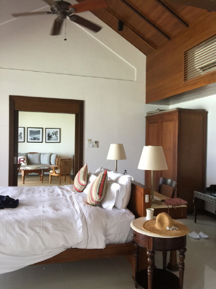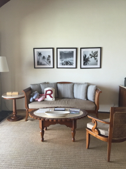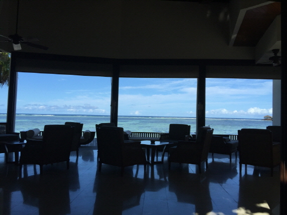 멀리 파도가 보이고 전경이 심심하지 않다. 로비, 비치바 등 매일 이용하는 곳이 가깝다.