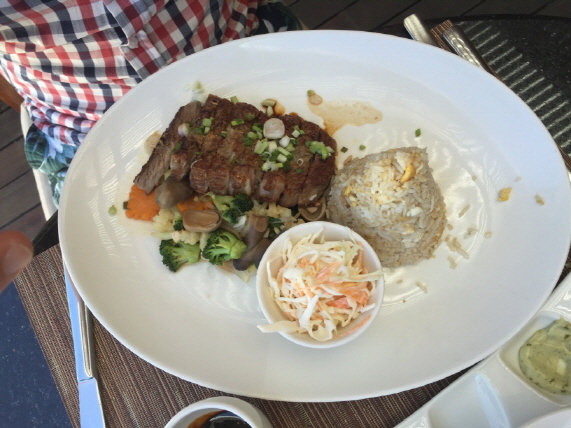 다이닝룸은 실내이기때문에 낮에 비치바로 나와서 메인메뉴를 주문하면 직원이 야외로 가져다줍니다.