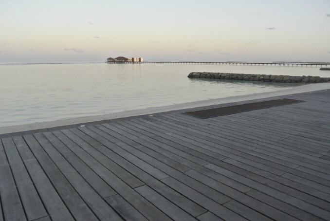 그래도 저 파도 앞으로 데크가 있고 위에는 테이블셋팅을 해놔서 데크아래 조명덕에