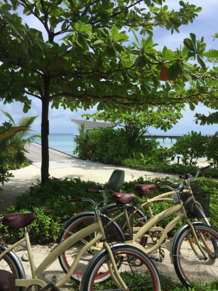 엄청 덮다. 비치바, 로비가는거리가 멀다. 정말 더워서 지칠땐 자전거 말고 버기 불러서 가야한다.