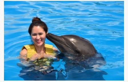 다들 돌고래 지느러미 잡고 도는 체험을 했지만 저는 돌고래 두마리가 밀어주는 풋푸쉬에도 도전했답니다 ~ 래쉬가드 워터레깅스덕에 걱정없이! ㅋㅋ