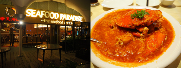 싱가폴 플라이어 타기전에 씨푸드 레스토랑에서 칠리크랩을 먹었어요.