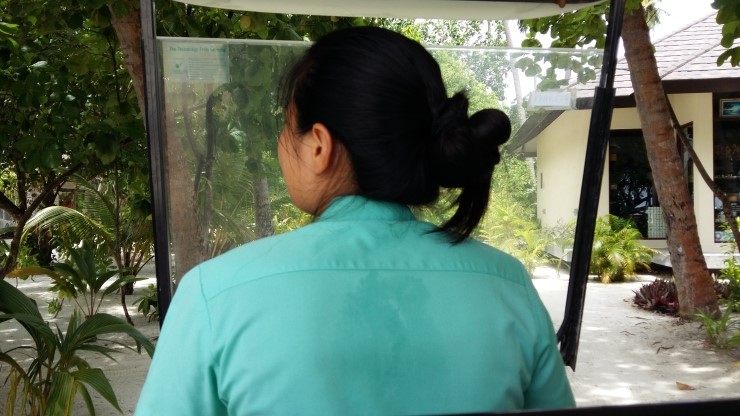 우리 담당 직원인 중국인 '션' 이 버기를 타고 리조트 시설들을 하나하나 설명해줘요