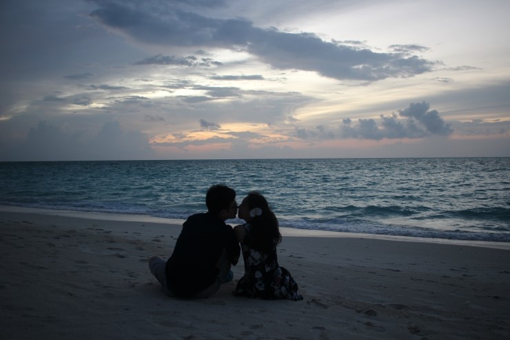 방 앞 모래사장에 나가서 해지는걸 구경해요 ♡