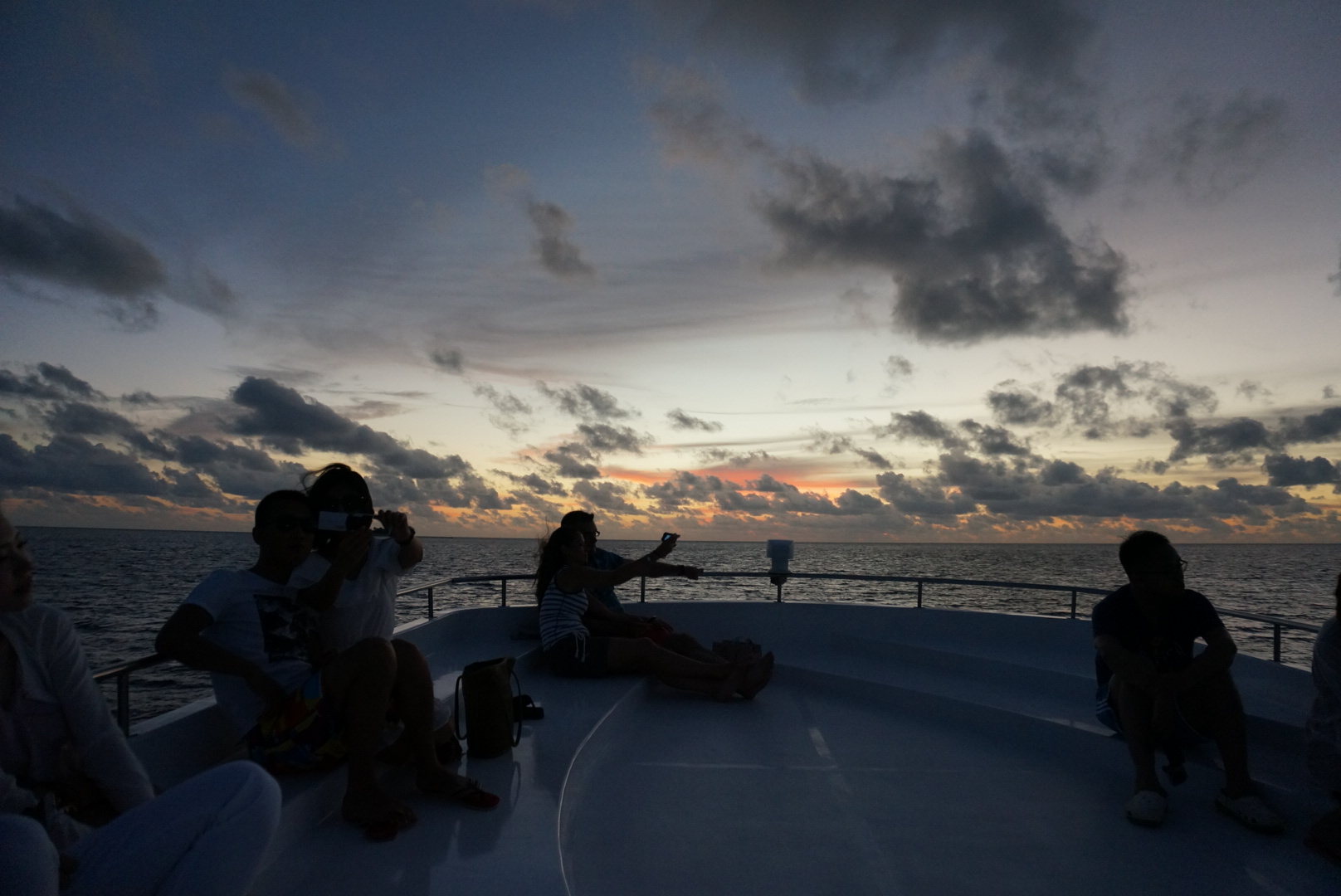 배2층으로 올라가서 난간에 기대서 석양보고 제공해주는 샴페인 마시는데