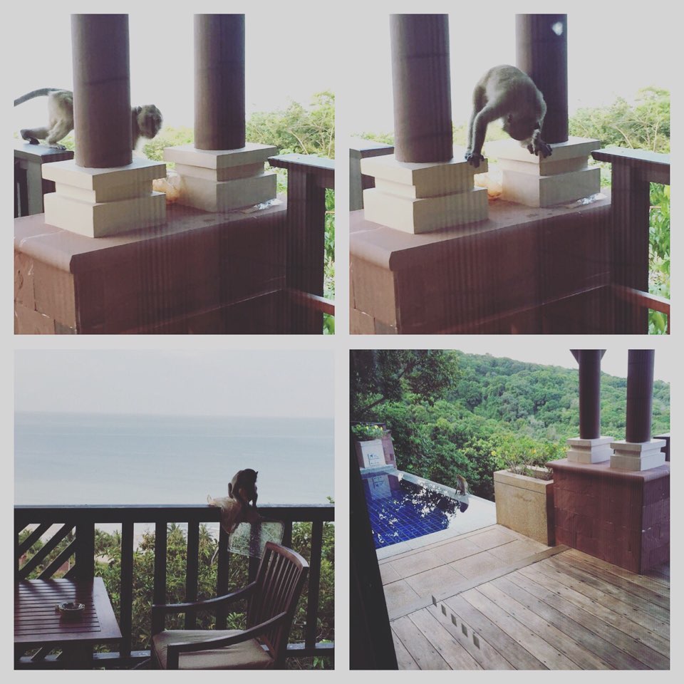 아침에 일어나면 원숭이들이 우리 풀빌라를 에워싸고 있는 색다른 경험을 했어요