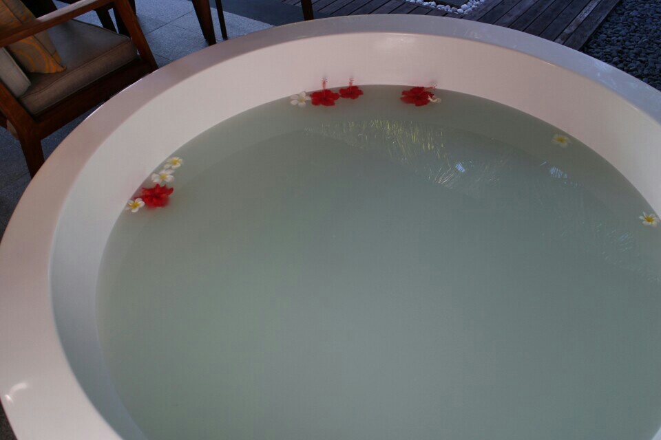 마사지 후 코코넛이 들어간 자쿠지에서 둘이 오손도손 이야기 나누며 좋은 시간을 보냈