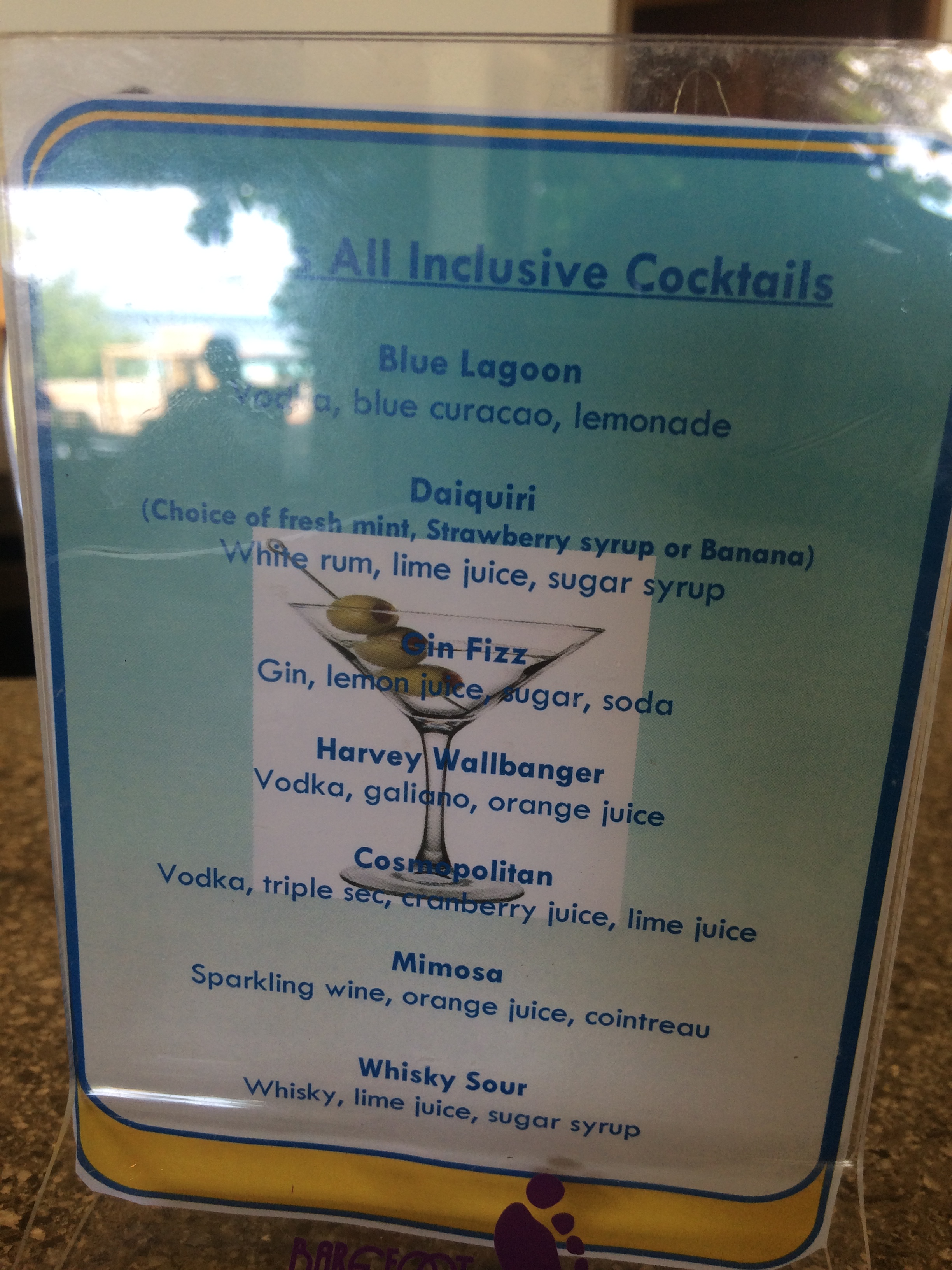 메인바에서 먹을 수 있는 올인 칵테일은 아래와 같은데 맛은 좀 밍밍한?ㅎ 넌알콜만 먹어서 그런지도 모르겠네요.