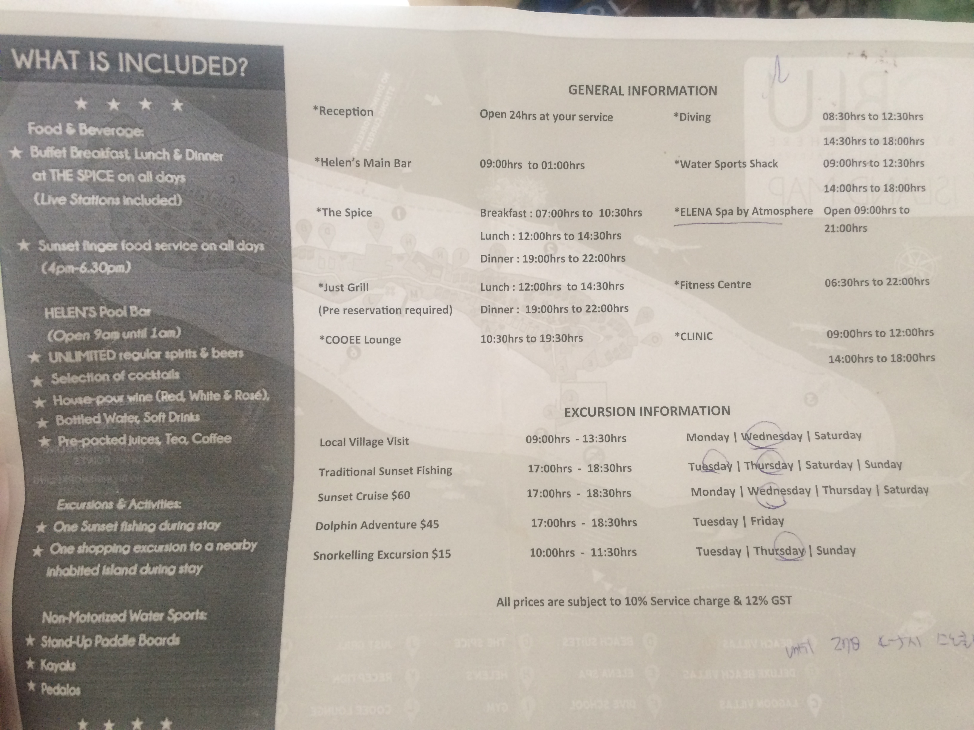 저희는 무료익스커션으로 스노쿨링 (장비 무료렌탈 가능-첫날 빌려서 떠나기 전날 반납), 썬셋피싱, 썬셋크루즈를