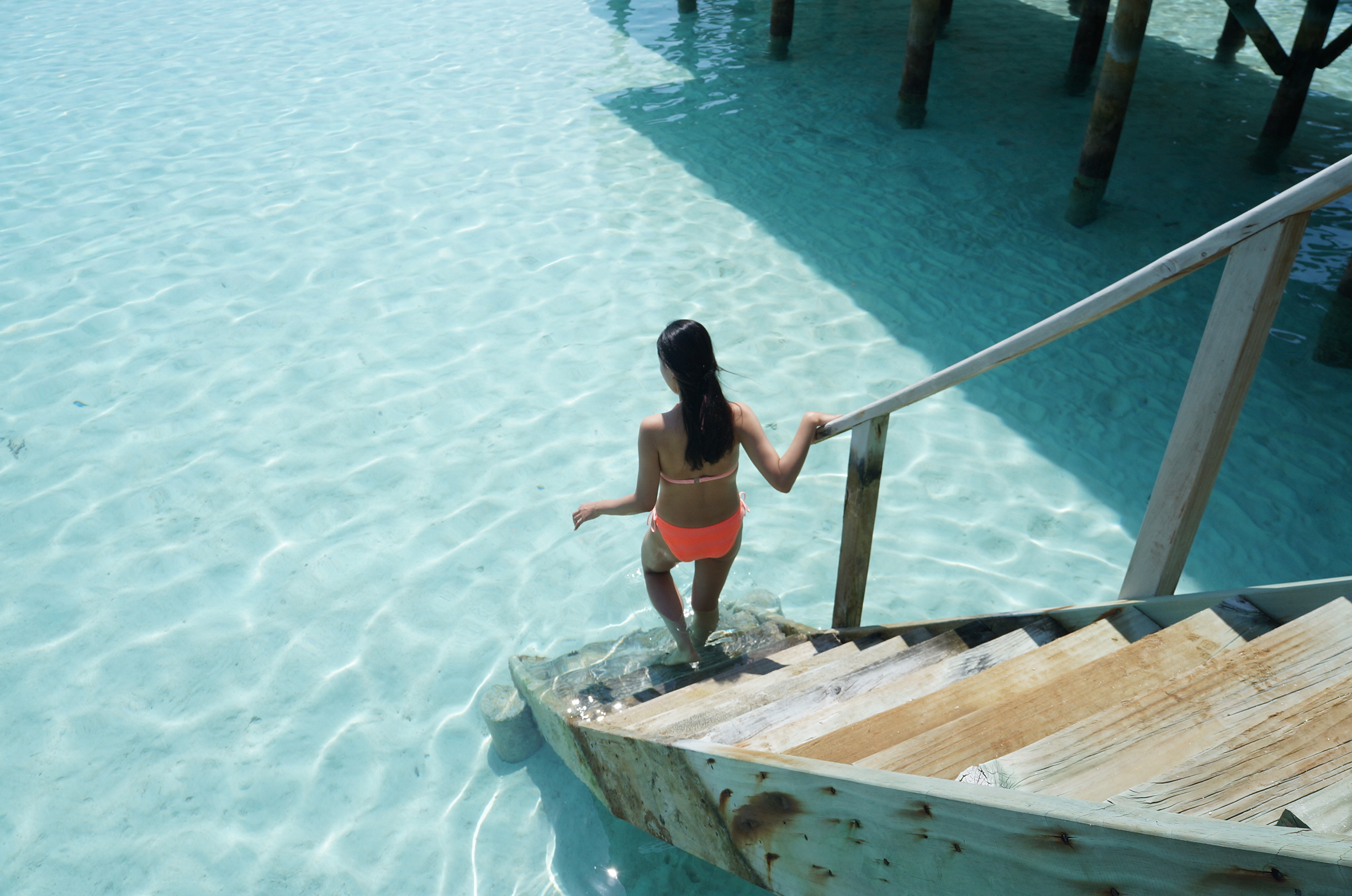 바다색이 비현실적이죠? ㅎㅎㅎ 워터빌라는 전부 라군에 떠있어서 물 깊이가 깊지는 않아요.