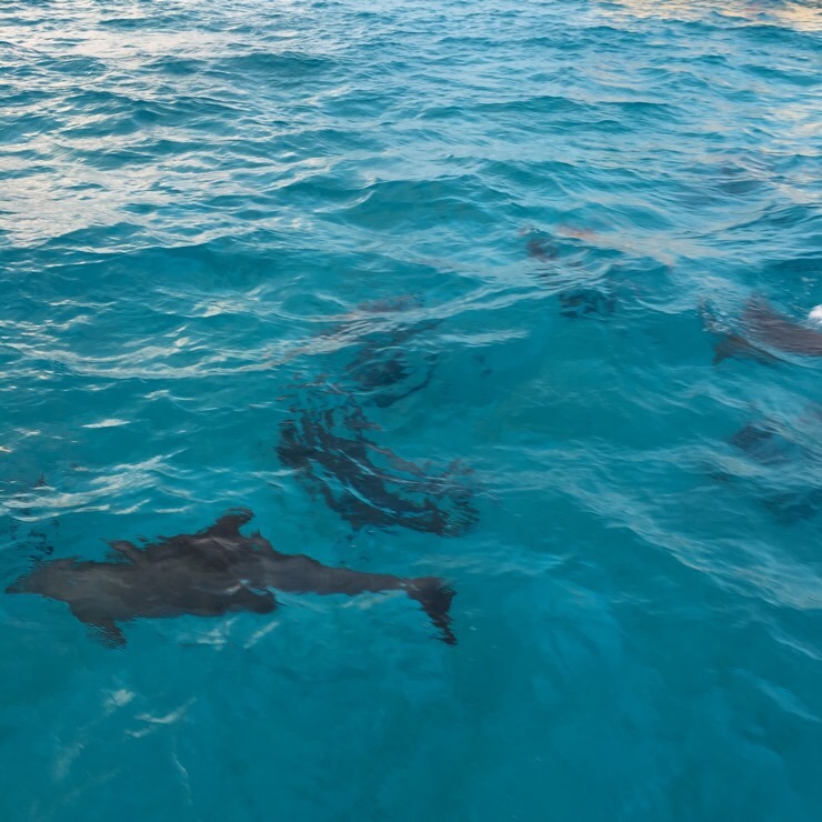 선셋에 중심이 있기보다는 돌고래 떼를 계속 쫓아서