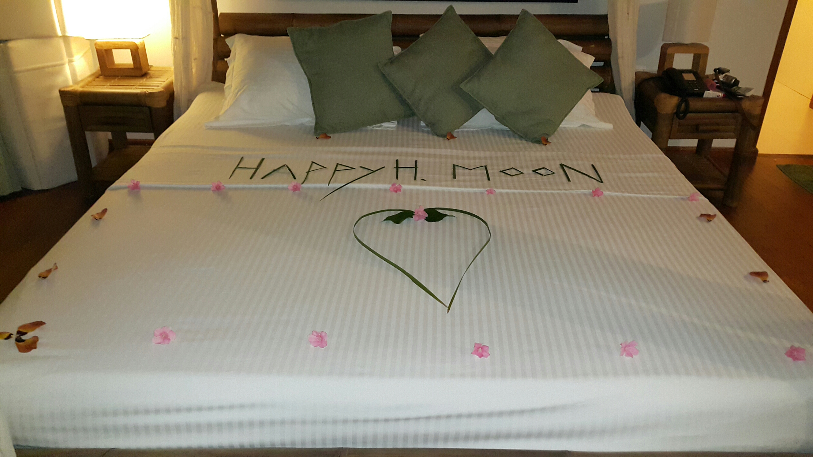 첫날 나이트피싱 다녀오니 허니문이라고 침대에 이쁘게 장식을 해주셨어용ㅎㅎ
