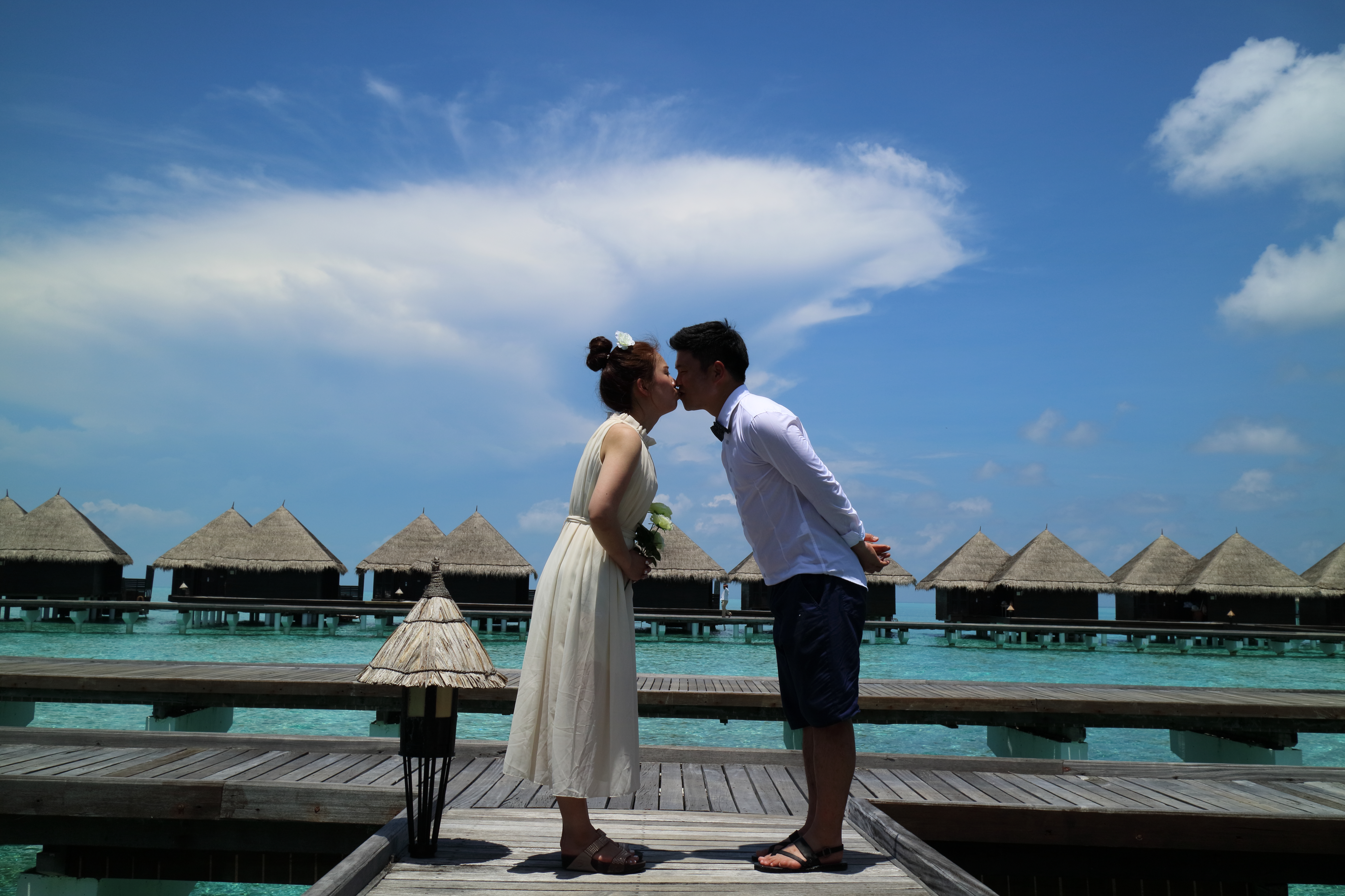 4월 몰디브는 비가 많이 온다고 해서 날씨가 좋을때 바로 셀프 웨딩을 촬영했어요 ㅋㅋㅋ