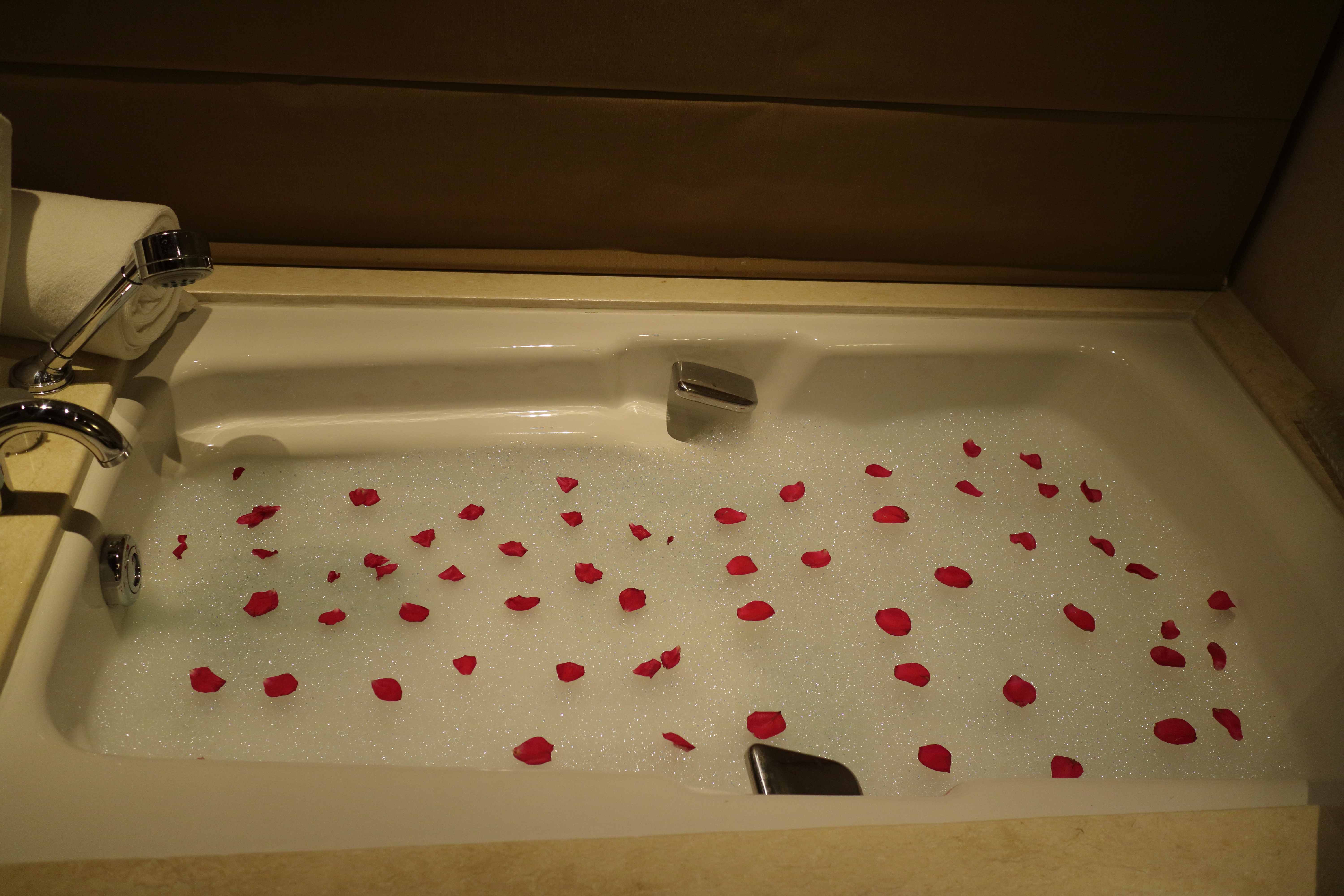 저녁을 먹고 룸으로 돌아오니 욕조 허니문 플라워 데코레이션 셋팅이 되어 있었어요 ㅎㅎ 너무 예뻤답니다