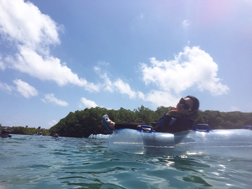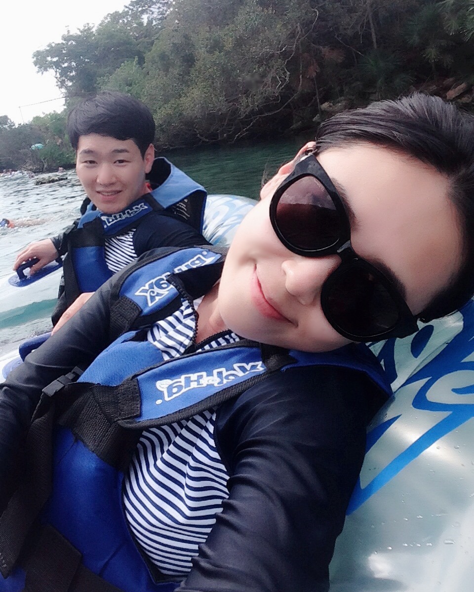 튜브타고 둥둥 떠 내려가는데