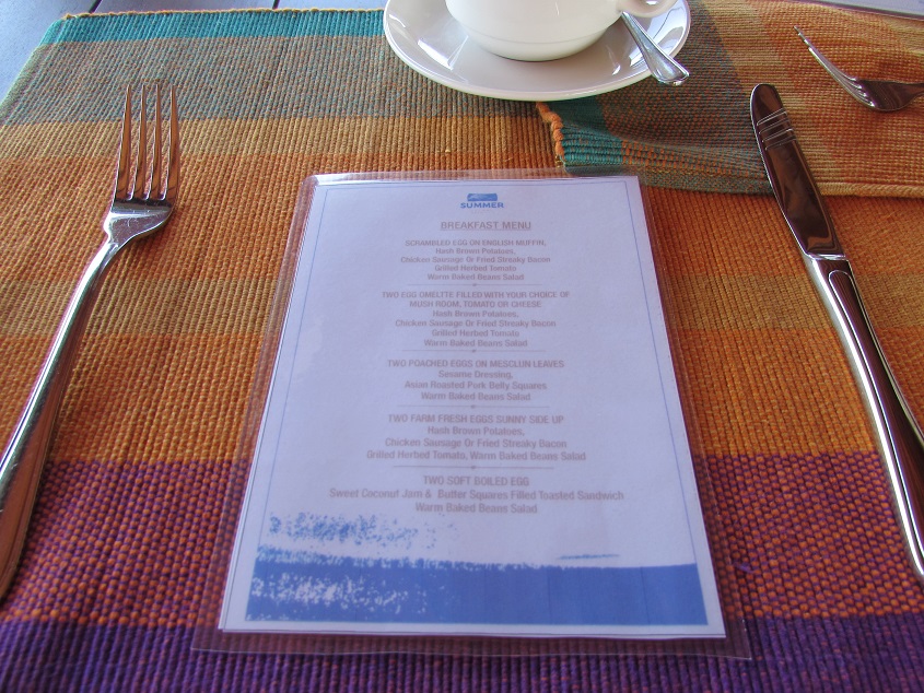 메뉴판 을 주면 저 중에서 한가지를 고르시고 주변에 놓여진 미니 뷔페바 에서 빵이나 과일 시리얼 간식등을 가져다 먹습니다