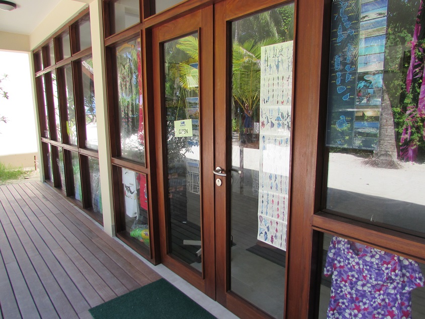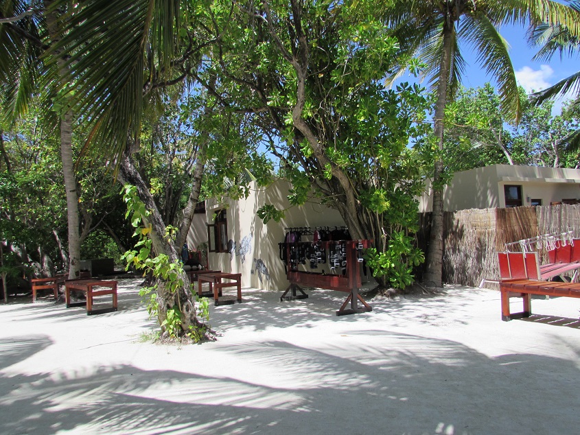 기념품 샵에서는 촌스런 꽃무늬 원피스부터 물놀이 장비와 몰디브 지도등 여러가지를 팝니다