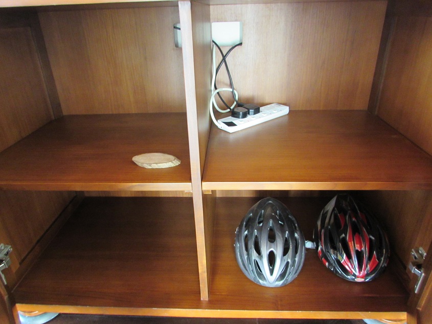 신발장 같이 생긴 장을 열어보니 자전거 타실때 다치지 마시라고 헬멧도 준비해놓았습니다