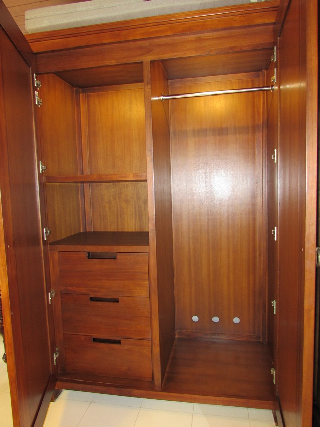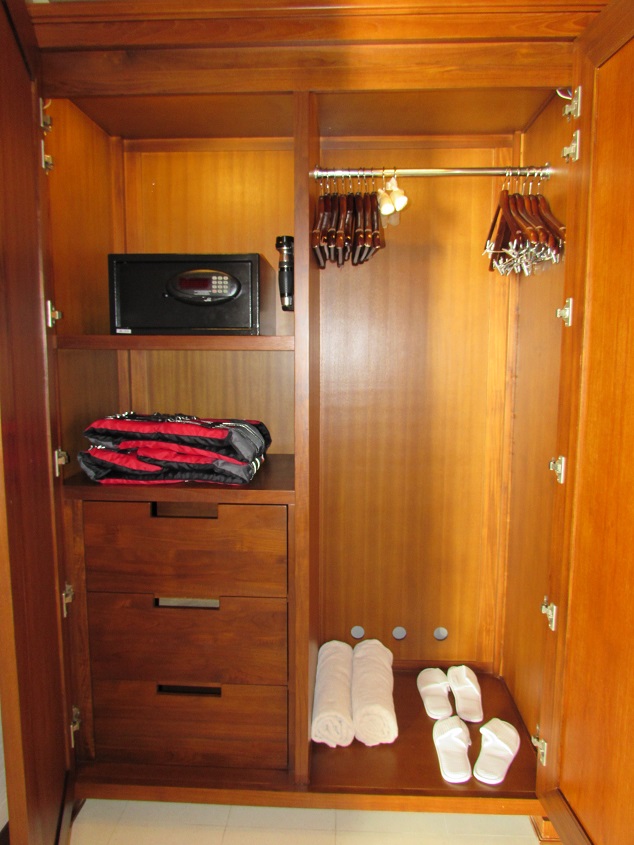왼쪽장에는 금고와 손전등 라이프자켓 ,슬리퍼와 비치타월이 있습니다