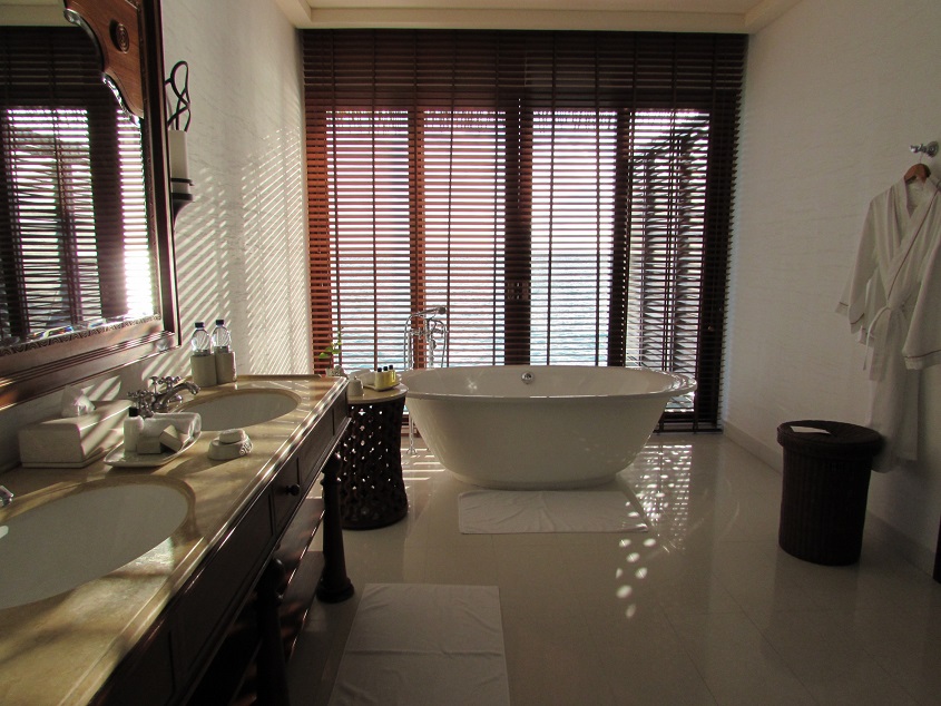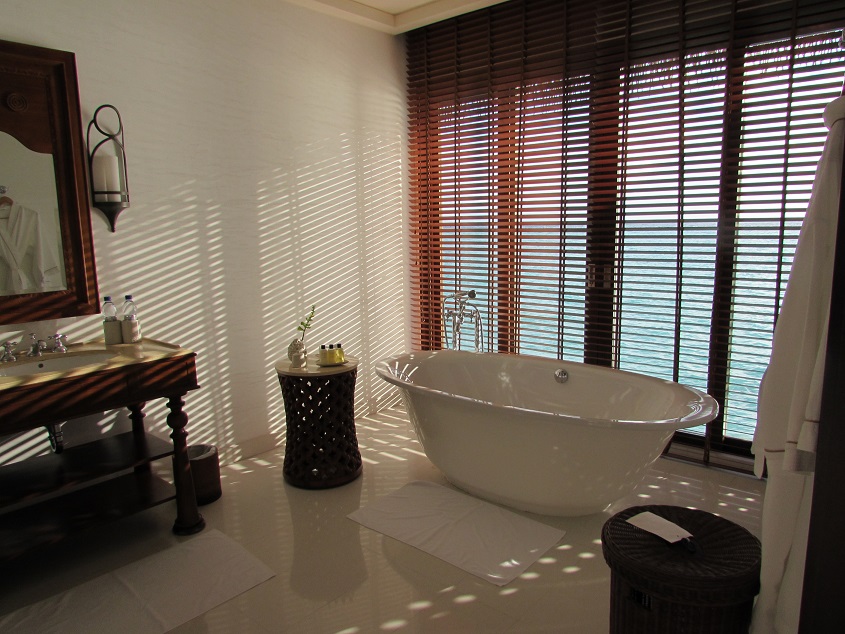 욕조 옆에 있는 삼종 어메니티 와 티라이트 그리고 솔트까지 어느것하나 넘기지 않고 새심하게 신경쓴 모습이 보입니다