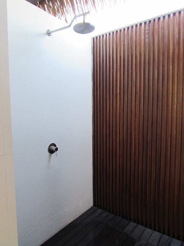 외부 샤워실은 짠 바닷물을 씻어내는 용도로만 사용해주세요 아래쪽이 바다로 바로 떨어지는 형태라
